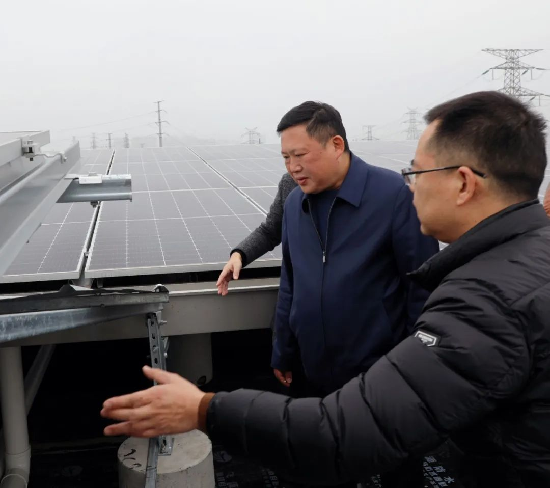 ▲集團黨委書記、董事長龍武星現場察看光伏電站