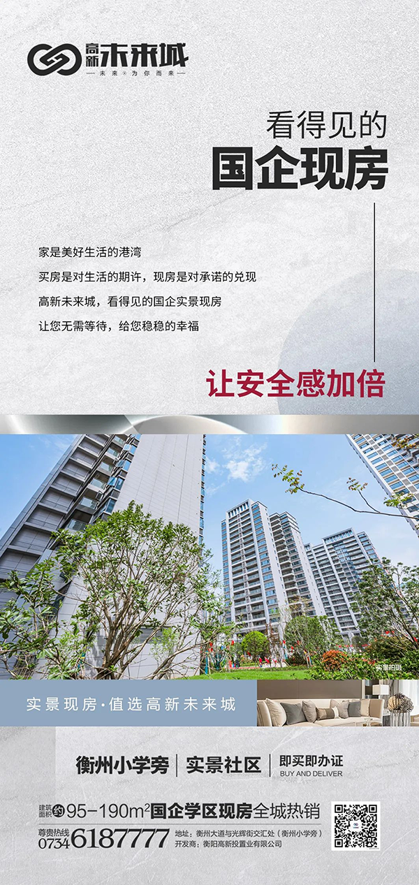 高新未來(lái)城為衡陽(yáng)高新控股集團(tuán)旗下衡陽(yáng)高新投置業(yè)公司精心打造的的高品質(zhì)住宅,由創(chuàng)客谷、文創(chuàng)谷、璞園等組成,地處衡陽(yáng)高新區(qū)核心位置,區(qū)位優(yōu)勢(shì)明顯,南臨“衡州大道數(shù)字經(jīng)濟(jì)走廊”發(fā)展?jié)摿薮?;教育資源優(yōu)質(zhì),擁有衡州小學(xué)(自帶幼兒園),華新實(shí)驗(yàn)中學(xué)等優(yōu)質(zhì)學(xué)府,孩子可享受幼兒園、小學(xué)到初中全程一站式高質(zhì)量教育服務(wù);相關(guān)配套齊全,周邊大型超市商場(chǎng)、農(nóng)貿(mào)市場(chǎng)、酒店飯店、醫(yī)院公園等應(yīng)有盡有。