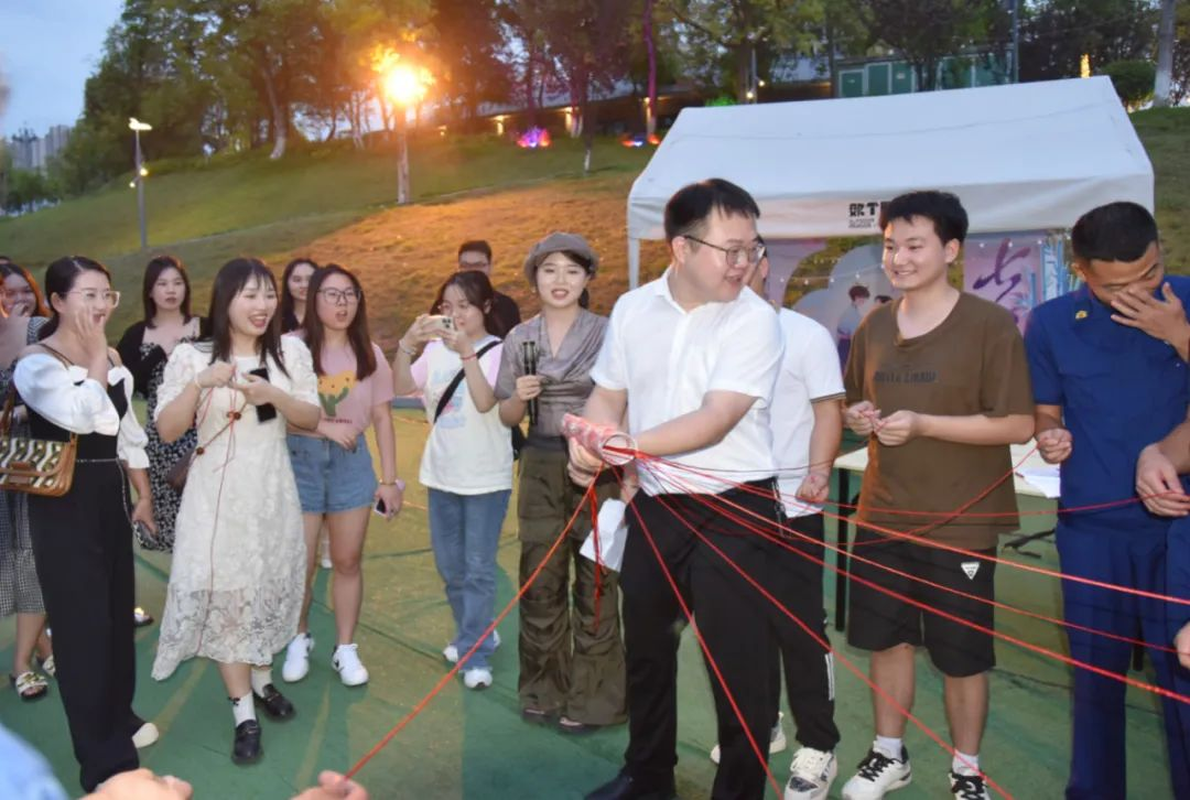 一段紅繩一段緣,一根根紅繩后連接著一顆顆跳動的心。在活動現場,青年男女們用拉紅繩結對的方式,邁出了相識的第一步。大家面對面相互打招呼,通過紅繩抽取彼此的今晚的伙伴,迅速地熟悉破冰,為彼此留下美好的初印象。