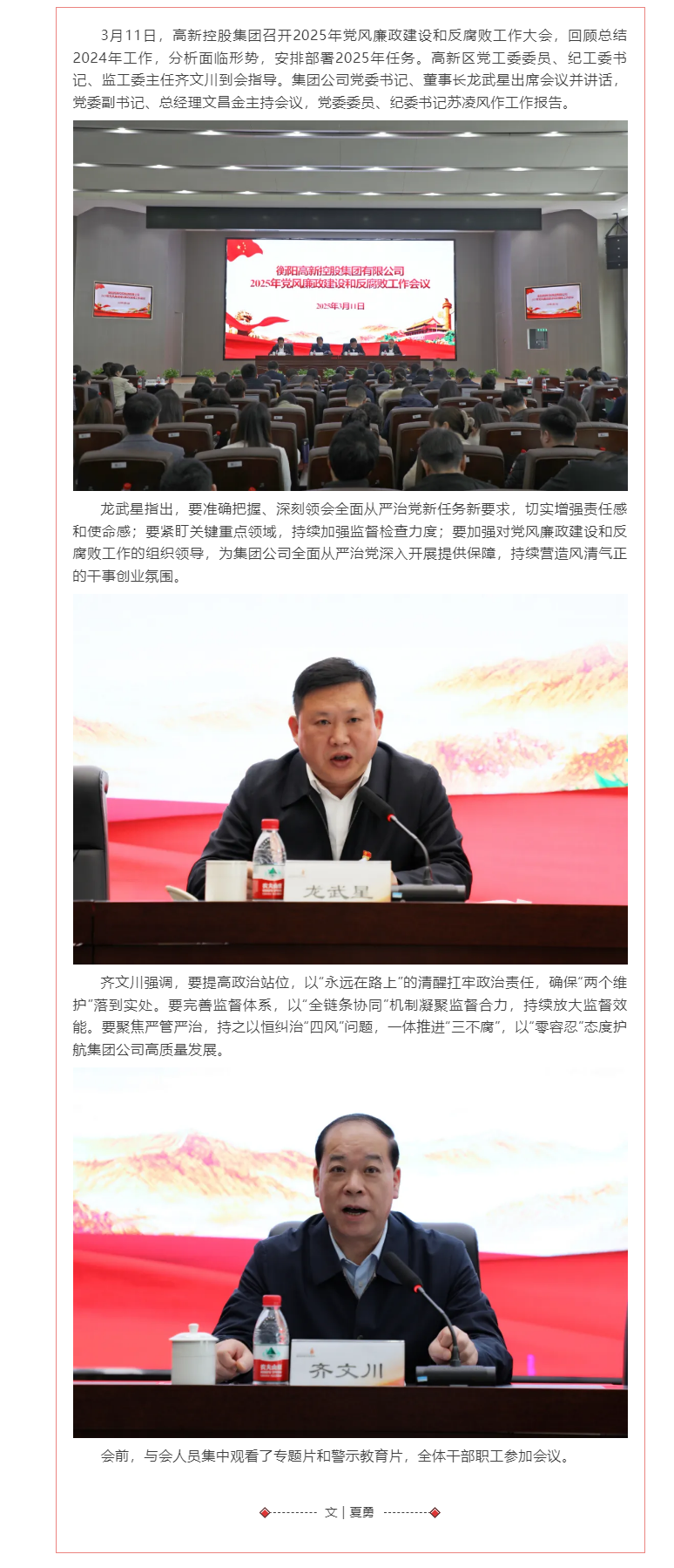 高新控股集團召開2025年黨風廉政建設和反腐敗工作會議